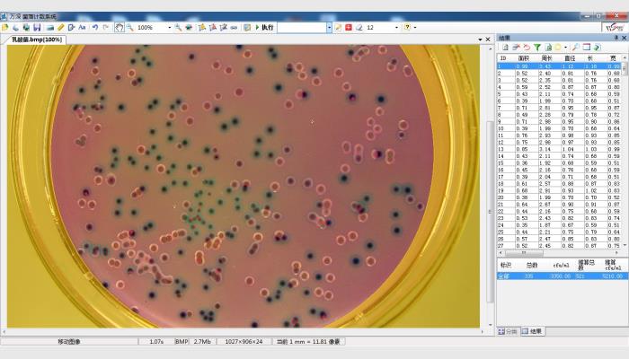 5、★自動分割相互成片粘連的長形、圓形等菌落目標(biāo),用戶可選擇分割或不分割。還可手動分割、合并菌落目標(biāo)圖像。鼠標(biāo)點(diǎn)擊修正,無痕剔除網(wǎng)格及文字,自動剔除雜質(zhì),有效支持復(fù)雜微生物統(tǒng)計(jì),符合GB4789.2-2016的參數(shù)自動換算特性。