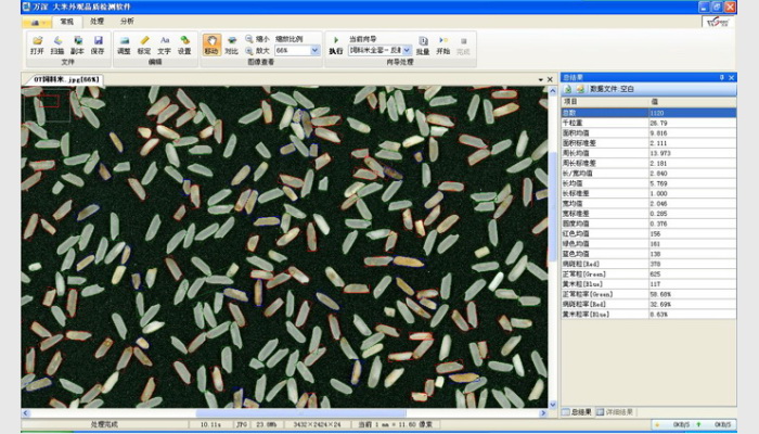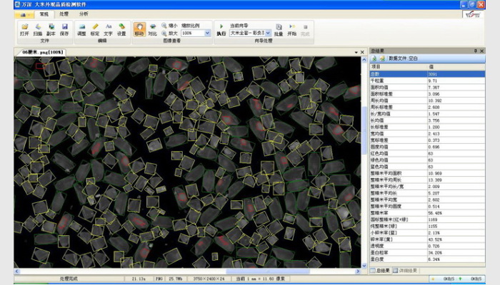 5、可大批量自動分析處理與輸出結(jié)果。與國標(biāo)GB/T1350稻谷、GB/T17891優(yōu)質(zhì)稻谷或GB1354-2018大米、農(nóng)業(yè)部新標(biāo)準(zhǔn)【大米】NY/T2334-2013、大米粒型分類判定LS/T6116-2016、糧食行業(yè)標(biāo)準(zhǔn) 大米LS/T 3247—2017、GB/T 35881-2018糧油檢驗(yàn) 稻谷黃粒米含量測定圖像分析法等標(biāo)準(zhǔn)相對應(yīng),檢測各項(xiàng)指標(biāo)的質(zhì)量比和粒數(shù)比。