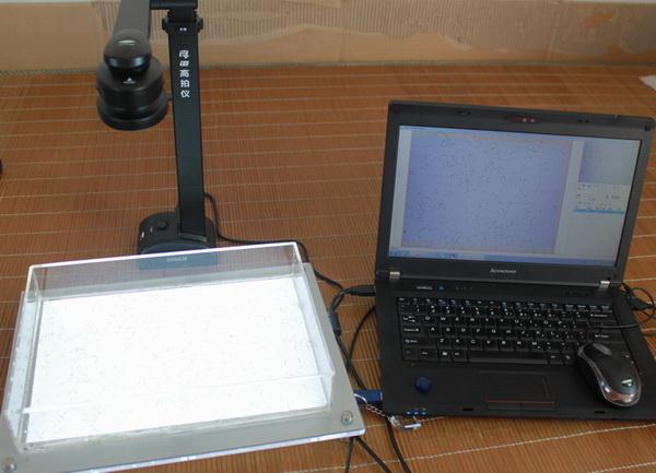 貝苗、蝦苗放入A4大小的透明成像水盤中,水深剛好浸沒單層的蝦苗、貝苗為宜,晃動一下盤子,將種苗均勻分散開來,并避免上下重疊。將該成像水盤放在【萬深】超薄背光照明燈板上,在電腦上點【拍照】獲得蝦苗等的圖像,由核心軟件自動分析該照片,精確數(shù)出照片中的所有蝦苗、貝苗數(shù)量。整個計數(shù)過程耗時≤9秒鐘,可大批量地分析目錄下的所有照片,全自動精準(zhǔn)得出對應(yīng)的各計數(shù)結(jié)果。要求:蝦苗計數(shù)應(yīng)放5°左右冷水中,確保其不出現(xiàn)打堆重疊。并在較暗的穩(wěn)定環(huán)境光下使用。