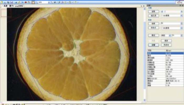(4)可同時測量30只柑橘類水果的:縱徑、橫徑、果形指數(shù)、總面積、皮厚、肉色分檔分析、外周長。
