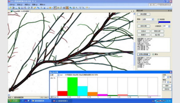 (3)能進(jìn)行根系的顏色分析,確定出根系存活數(shù)量,輸出不同顏色根系的直徑、長度、投影面積、表面積、體積。