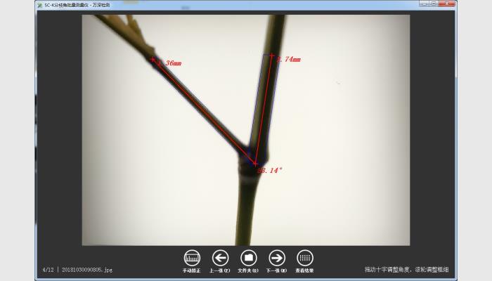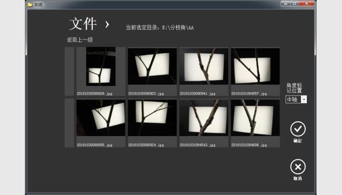 2、★軟件可按目錄來批量化智能測量油菜、樹枝等的分枝角或水稻小麥等的莖葉角,以及對應(yīng)測量位置的枝干直徑。