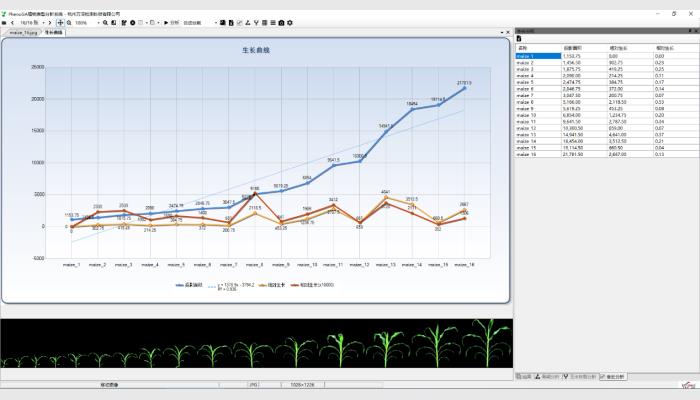 (8)其它:不同生長(zhǎng)時(shí)期自動(dòng)批量化處理分析,多植株網(wǎng)格分析,直線、角度等幾何測(cè)量,各測(cè)量結(jié)果可編輯修正。