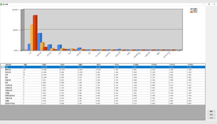 (6)可分析統(tǒng)計(jì)每類浮游動物的數(shù)量、面積、體積、及其占比;對各分類進(jìn)行排序及柱狀圖顯示占比情況。