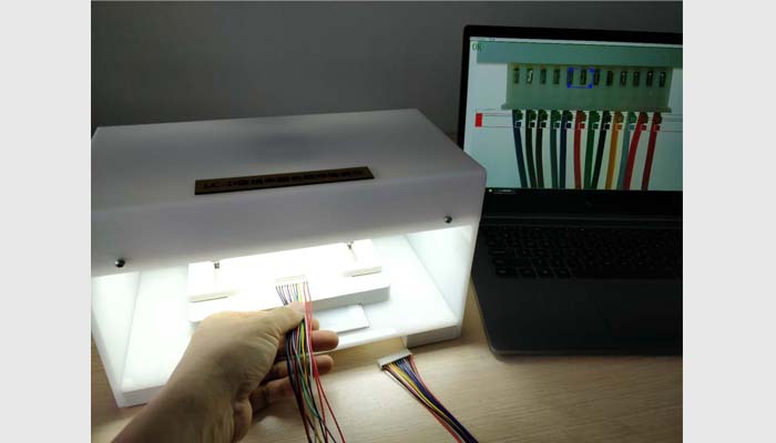 線束生產(chǎn)中需按指定顏色來(lái)排列線序。人工判別常因眼睛疲勞而產(chǎn)生錯(cuò)檢或漏檢。線序自動(dòng)檢測(cè)儀利用機(jī)器視覺(jué)技術(shù),通過(guò)萬(wàn)深智能算法來(lái)對(duì)比預(yù)設(shè)參數(shù),判定是否符合預(yù)設(shè)標(biāo)準(zhǔn),自動(dòng)識(shí)別線束顏色并標(biāo)記輸出,100%保證無(wú)錯(cuò)位產(chǎn)品流出。